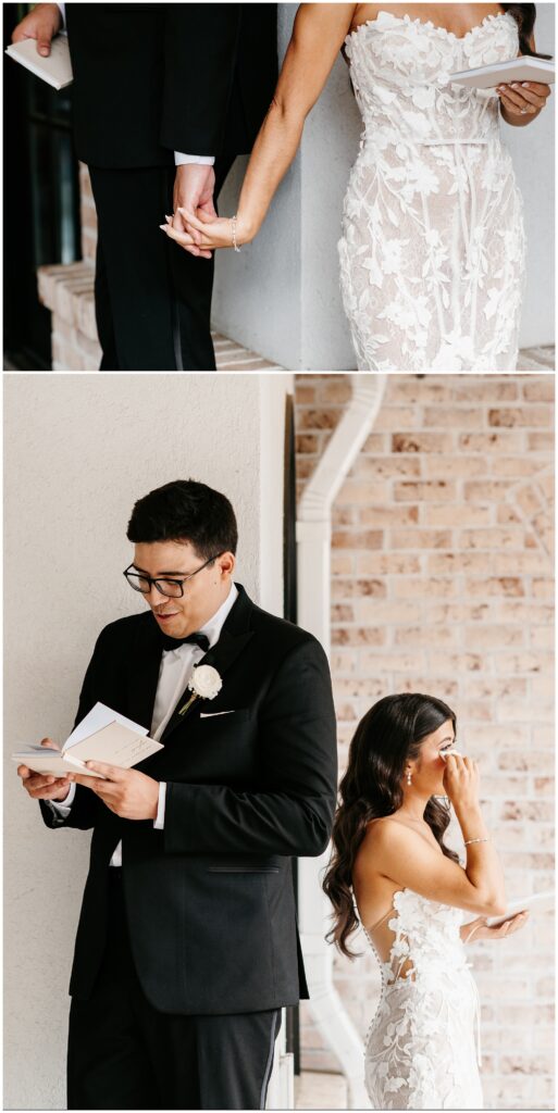 Instead of a traditional first look, Danielle and David shared a private first touch and read their vows to each other. The moment felt incredibly emotional, full of love (and definitely a few tears).